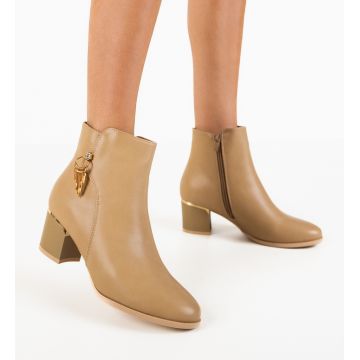 Botine din piele ecologica kaki cu aplicatie metalica pe varf